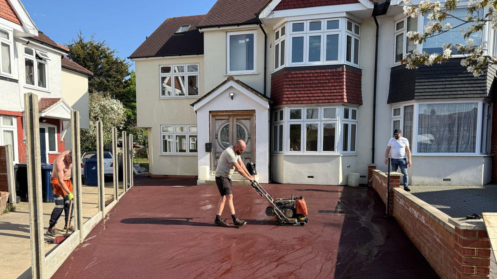 Red tarmac driveway installed to create a strong, smooth and visually distinctive surface for everyday residential use.